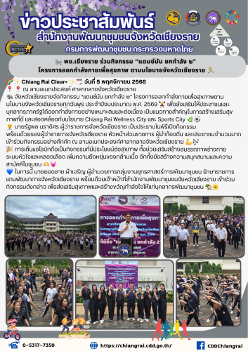 ð āļāļąāļāļŦāļ§āļąāļāđāļāļĩāļĒāļāļĢāļēāļĒāļāļąāļāļāļīāļāļāļĢāļĢāļĄ “āđāļāļāļāđāļĄāļąāļ āļĒāļāļāļģāļĨāļąāļ āđ” āđāļāļĢāļāļāļēāļĢāļāļāļāļāļģāļĨāļąāļāļāļēāļĒāđāļāļ·āđāļāļŠāļļāļāļ āļēāļāļāļēāļĄāļāđāļĒāļāļēāļĒāļāļąāļāļŦāļ§āļąāļāđāļāļĩāļĒāļāļĢāļēāļĒāļāļļāļāļ§āļąāļāļāļļāļ āļāļĢāļ°āļāļģāļāļĩāļāļāļāļĢāļ°āļĄāļēāļ āļ.āļĻ. 2569 ðïļâïļ āđāļāļ·āđāļāļŠāđāļāđāļŠāļĢāļīāļĄāđāļŦāđāļāļĢāļ°āļāļēāļāļāđāļĨāļ°āļāļļāļāļĨāļēāļāļĢāļ āļēāļāļĢāļąāļāđāļāđāļāļāļāļāļģāļĨāļąāļāļāļēāļĒāļāļĒāđāļēāļāđāļŦāļĄāļēāļ°āļŠāļĄāđāļĨāļ°āļāđāļāđāļāļ·āđāļāļ āđāļāđāļāđāļāļ§āļāļēāļāļŠāļģāļāļąāļāđāļāļāļēāļĢāļŠāļĢāđāļēāļāđāļŠāļĢāļīāļĄāļŠāļļāļāļ āļēāļāļāļĩāđāļāļĩ āđāļĨāļ°āļŠāļāļāļāļĨāđāļāļāļāļąāļāļāđāļĒāļāļēāļĒ Chiang Rai Wellness City āđāļĨāļ° Sports City ðŋâ―