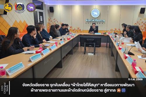 📌 ทั้งนี้ ที่ประชุมได้ร่วมกันพิจารณาแนวทางในการกำหนดและผลักดันให้เกิด อัตลักษณ์ผ้าไทยจังหวัดเชียงราย เพื่อประกาศเป็นเอกลักษณ์ของจังหวัดเชียงรายในอนาคต ได้แก่